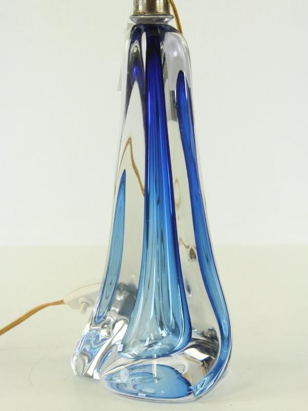 Val Saint Lambert kristallen tafellamp met blauwe kern en zwarte kap