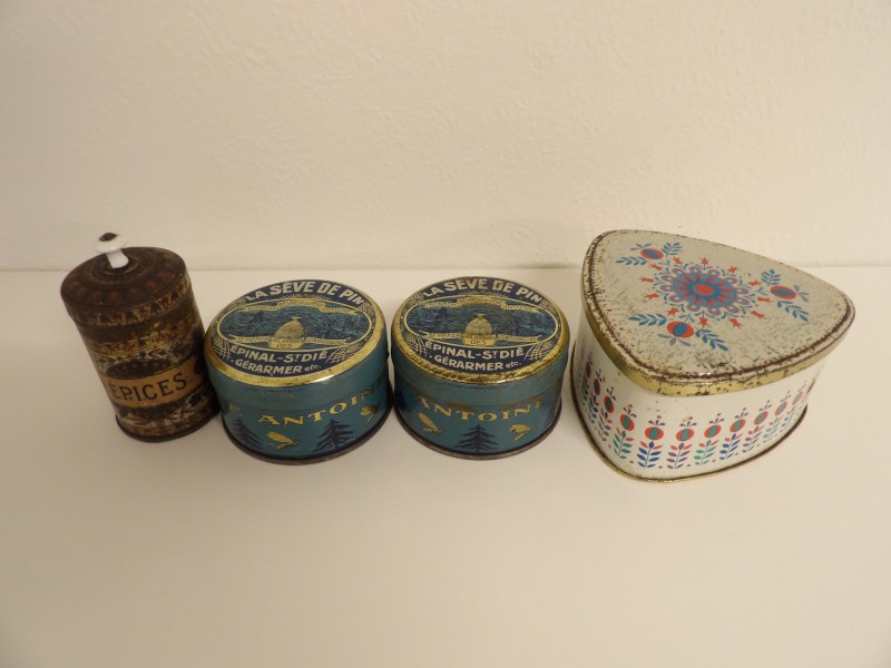 Sommige dozen zijn van een bepaald merk (Quaker, Venz, Chicorée, La sève de pin, Jacques chocolat, Cida, Côte d'Or).