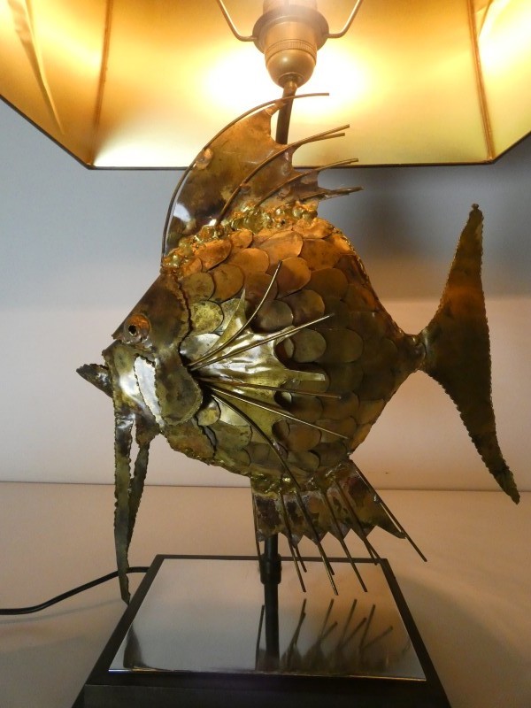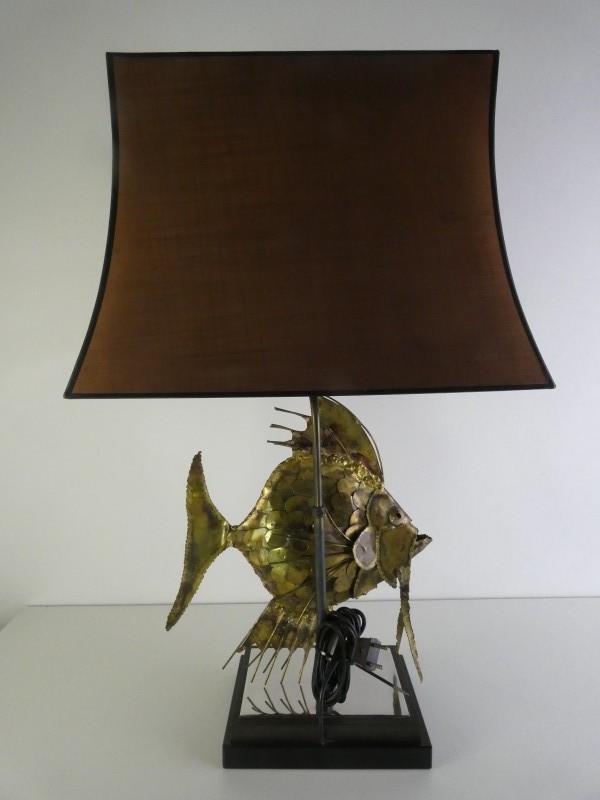 uit de jaren ’70.De lamp stelt een gestileerde vis voor, vaak geïdentificeerd als een maanvis,
