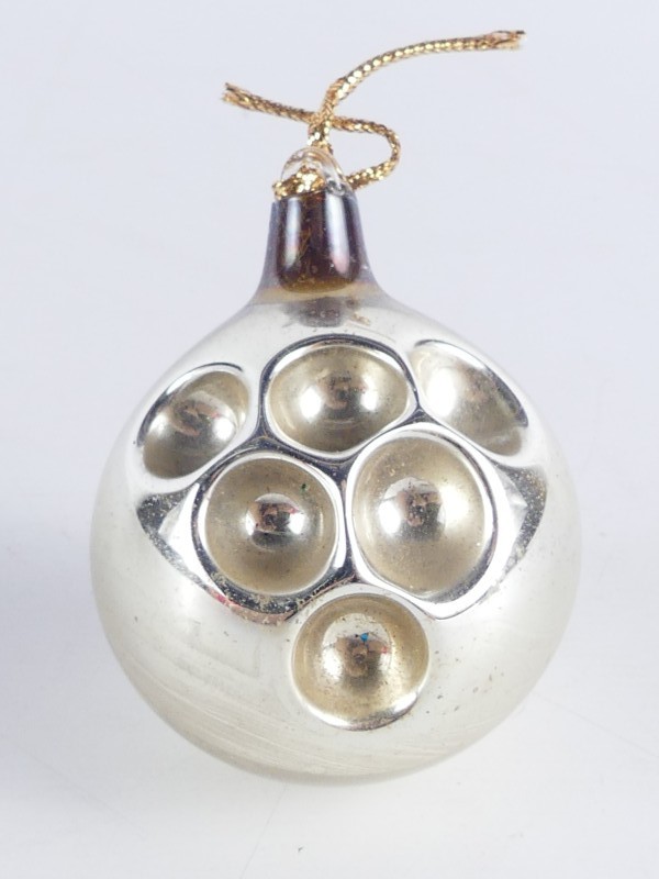 Deze charmante verzameling bestaat uit diverse mondgeblazen glazen kerstornamenten uit de jaren 1950–1960.