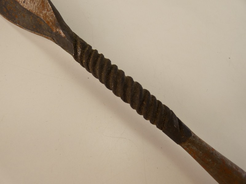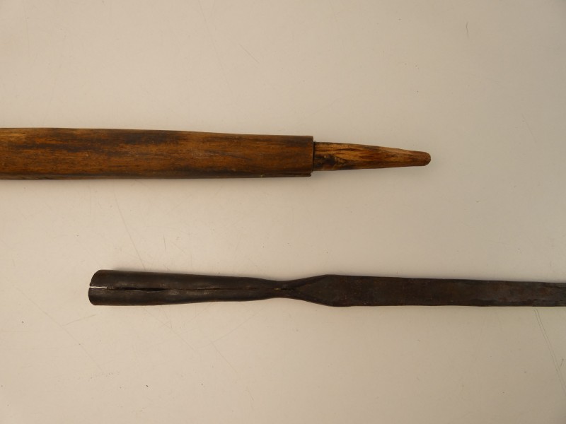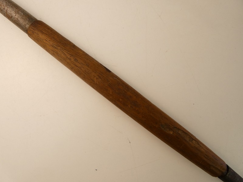 - Speer met weerhaken, teakhouten handvat en spies, totale lengte: 1,29 cm