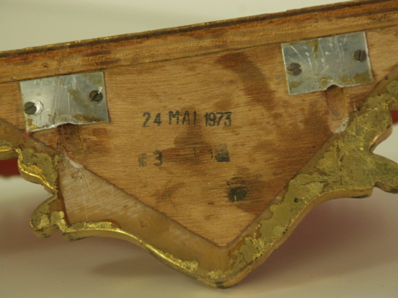 Spiegel is achteraan gemarkeerd met "10782" en "24 mar 1973" en het plankje met "24 mai 1973" en een 3.