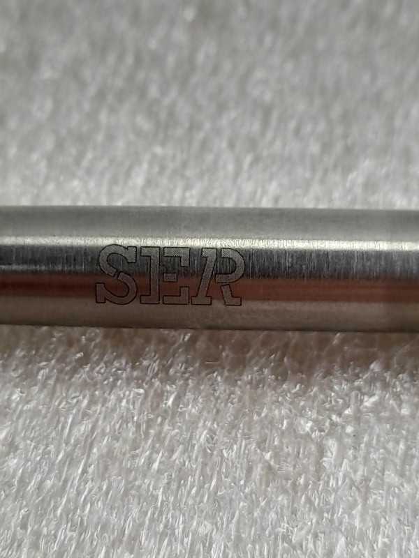 Op de pen is het merk of logo 'SER' te zien. Dit kan mogelijk verwijzen naar