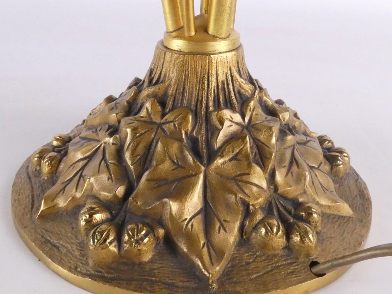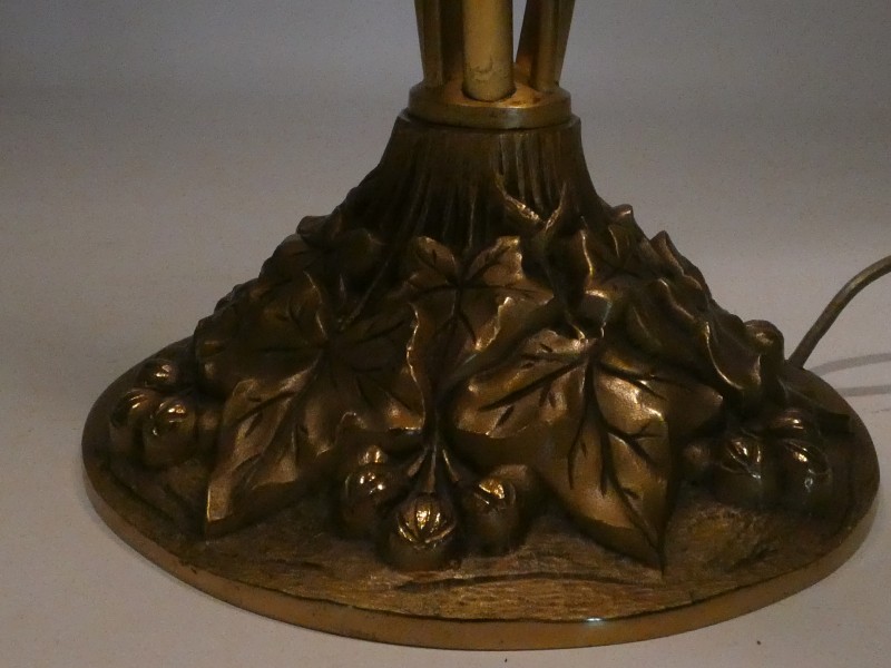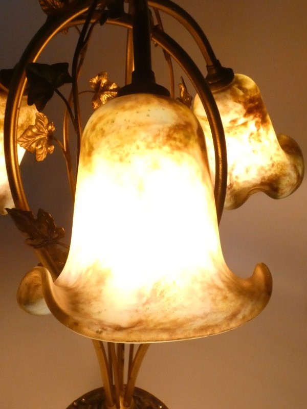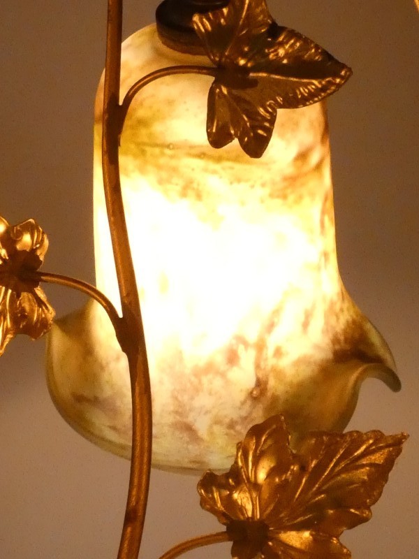 Art Nouveau stijl lamp met pâte‑de‑verre glazen kapjes (gemerkt) – getest & 1 jaar garantie