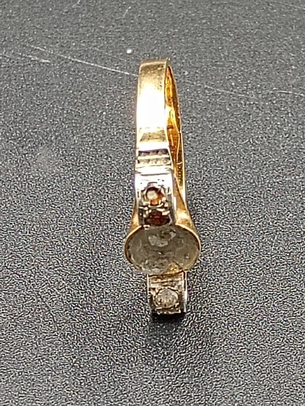 Hoewel de centrale steen ontbreekt, biedt dit juweel een prachtige kans voor restauratie of personalisatie. Voeg een edelsteen naar keuze toe en creëer een uniek, op maat gemaakt sieraad.