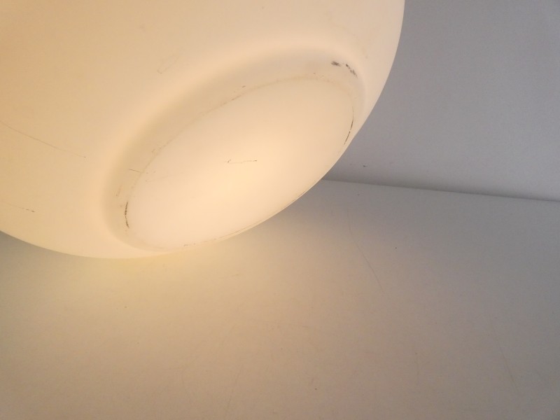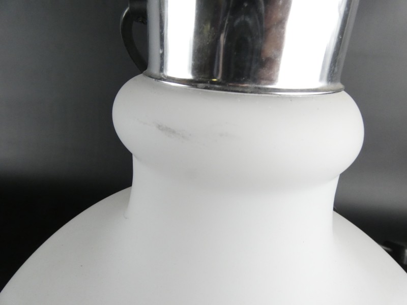 mat opalineglas (melkglas). De zilverkleurige details en de fittinghouder zijn uitgevoerd