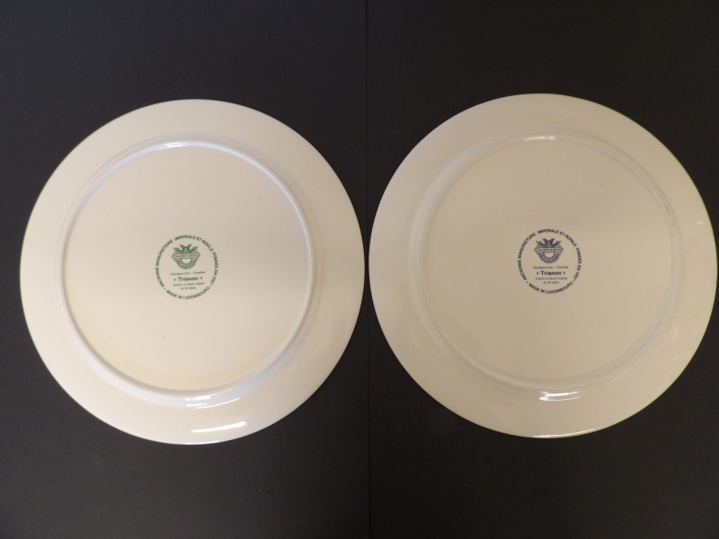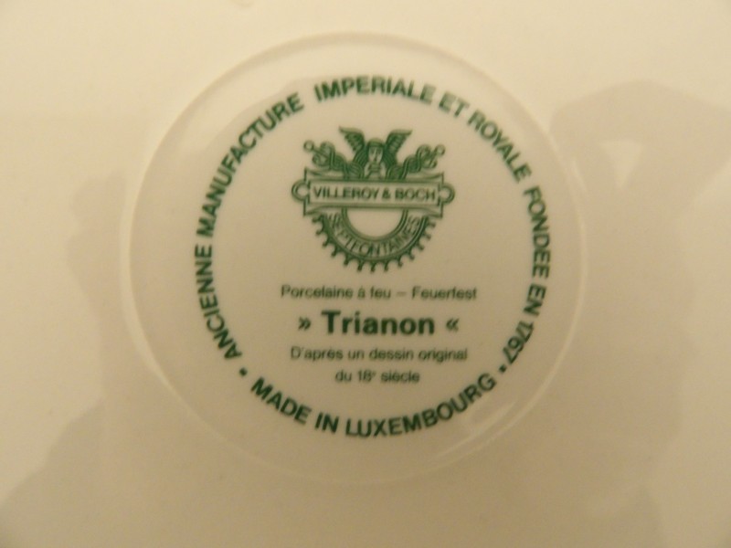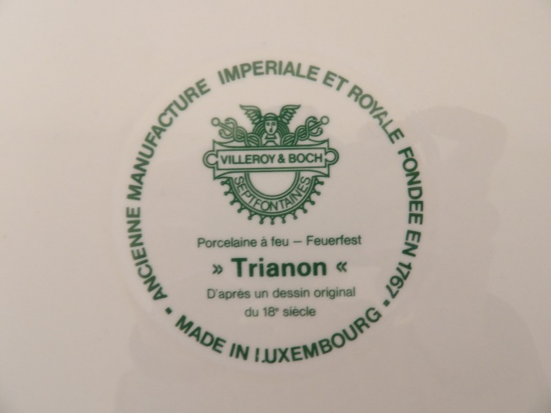 Elk serviesstuk draagt een "Villeroy & Boch Septfontaines - Trianon" stempel op de achterkant.