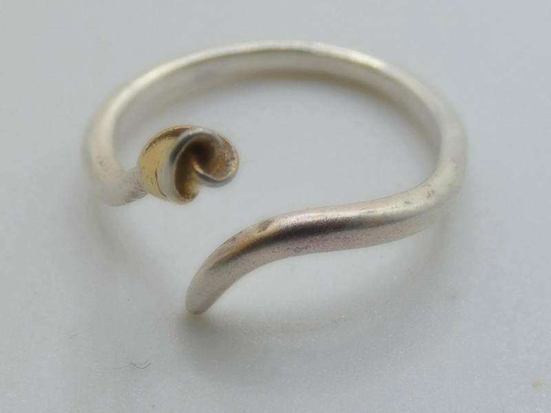 De ring wikkelt om de vinger en eindigt in twee punten.