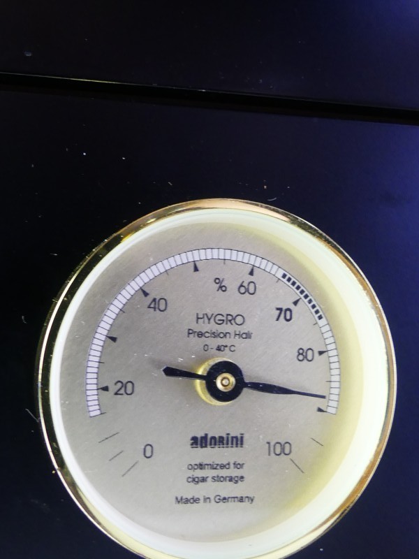 De hygrometer aan de voorzijde meet nauwkeurig de luchtvochtigheid, optimaal afgestemd voor sigarenbewaring.