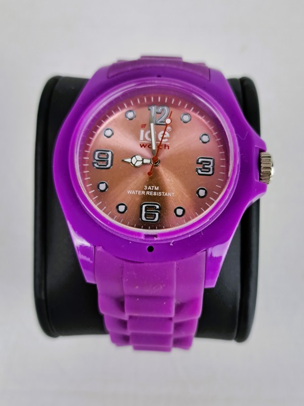 Deze set bevat vier kleurrijke Ice-Watch horloges in een originele zwarte opbergdoos met glazen deksel. De horloges hebben een sportief ontwerp en silicone bandjes in de kleuren blauw, paars, wit en donkerblauw/rood. Ze zijn voorzien van duidelijke cijfers, draaibare lunette en datumvenster. Bijgevoegd is ook een originele Swatch Quartz horloge in transparante doos. Dit Zwitsers horloge heeft een typisch jaren 80-design met een transparante kast en zichtbaar binnenwerk, roze wijzers en blauwe band. Ice-Watch is een Belgisch merk, populair sinds eind jaren 2000. Swatch is een Zwitsers merk bekend om zijn modieuze en betaalbare horloges sinds de jaren 80.