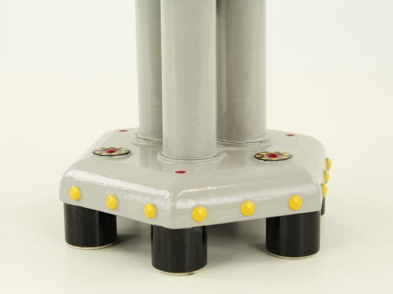 Staand op 3 pootjes met mat zilverkleurige metalen afwerking