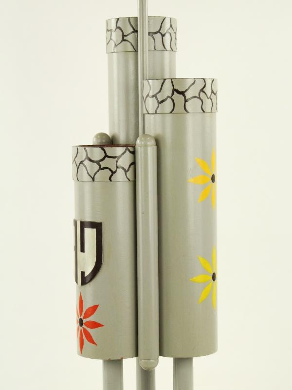 Twee speelse, architecturaal opgebouwde kunstobjecten in hout, samengesteld uit meerdere verticale cilinders rond een centrale as. De vormen doen denken aan een totem of torenstructuur, rijk beschilderd met gestileerde bloem- en zonmotieven. De exacte functie is niet vastgelegd; de objecten kunnen zowel puur sculpturaal worden gepresenteerd als een vrije, creatieve invulling krijgen (bijvoorbeeld als decoratief verzamelobject of als houder voor paraplu’s, breinaalden of soortgelijke items). De werken sluiten nauw aan bij Jacobs’ thematiek van leven, groei, verbondenheid en menselijkheid. Het zijn geen louter decoratieve objecten, maar intieme kunstwerken met een duidelijk verhalend en symbolisch karakter.