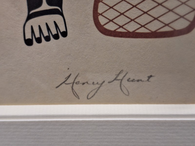 Dit unieke, handgesigneerde kunstwerk van Henry Hunt, een icoon van de Pacific Northwest Coast-kunst, belichaamt de rijke mythologie en vakmanschap van het Kwakwaka'wakw-volk. Als voormalig hoofd houtsnijder van het British Columbia Provincial Museum en leerling van Mungo Martin, creëerde Hunt een tijdloos stuk dat zowel culturele diepgang als artistieke excellentie uitstraalt.