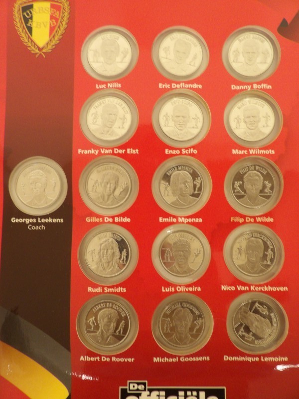Op de voorzijde is telkens het hoofd en de naam van één van 15 Rode duivels te zien. Er is ook een munt van de toenmalige bondcoach Georges Leekens inbegrepen.