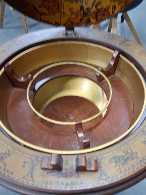 Dit type BAR Globe is ontworpen als decoratief object en kan geopend worden om flessen en glazen in op te bergen (inhoud niet inbegrepen). De combinatie van de klassieke uitstraling en het ambachtelijk ogende houtwerk maakt dit een opvallend en stijlvol interieurstuk.
