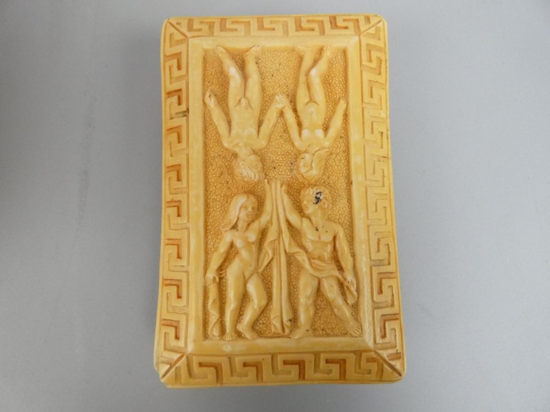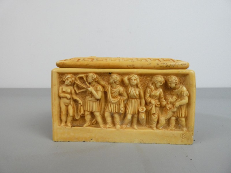 - Deksel voorzien van figuren binnen een Griekse meander-rand.
