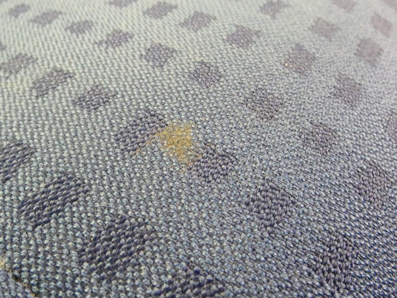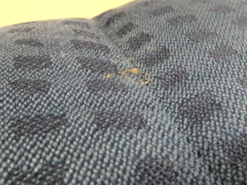 en enige verkleuring in de blauwe stof (zie foto’s).