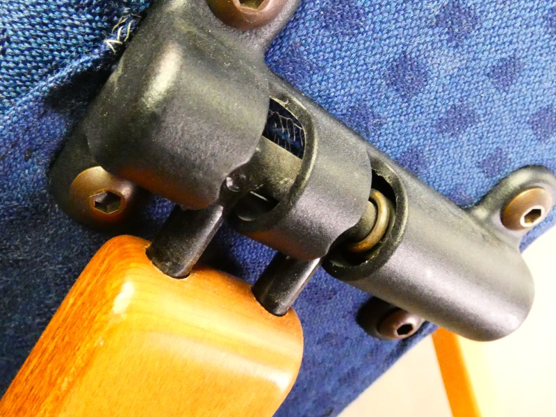 De stoel vertoont lichte gebruikssporen: twee kleine chipjes in het hout
