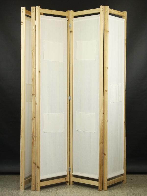 Elk paneel voorzien van één of twee opgestikte zakken uit dezelfde stof — handig voor lichte opbergers zoals tijdschriften, papieren, accessoires of decoratie