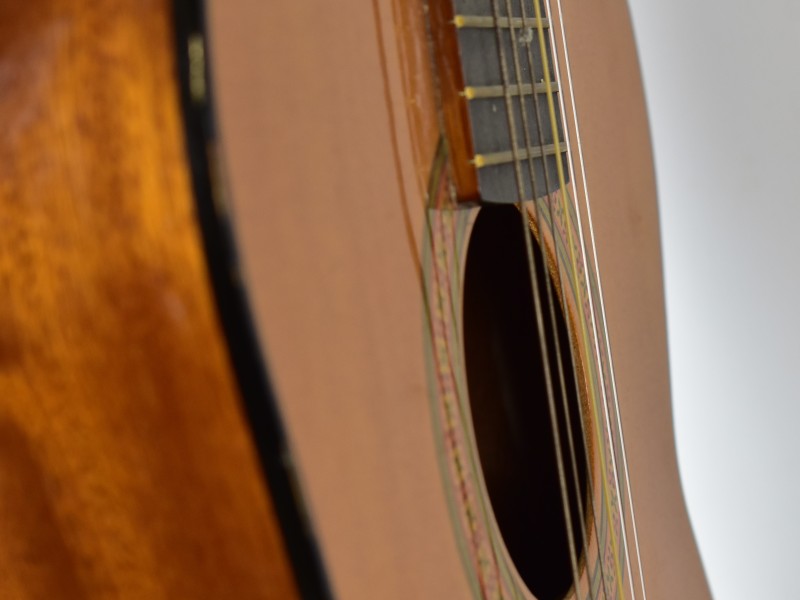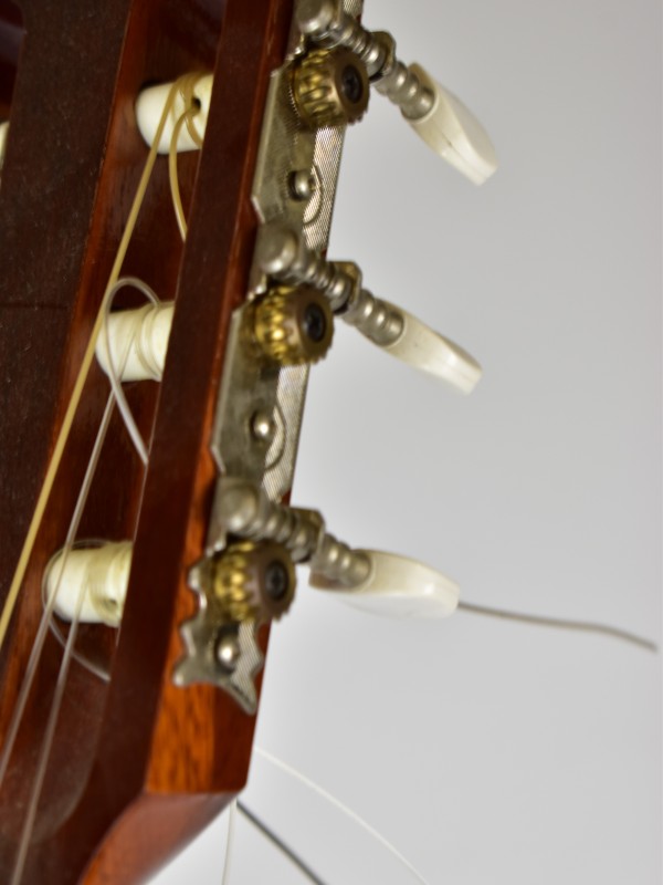 Goede staat. Enkele losse of ontbrekende snaren. Lichte gebruikssporen aan lak en kop. Stemmechaniek compleet.