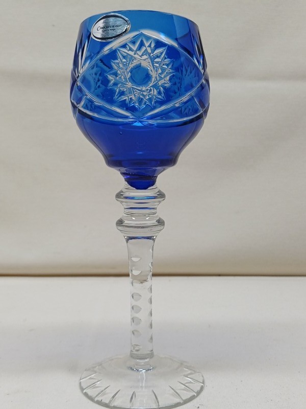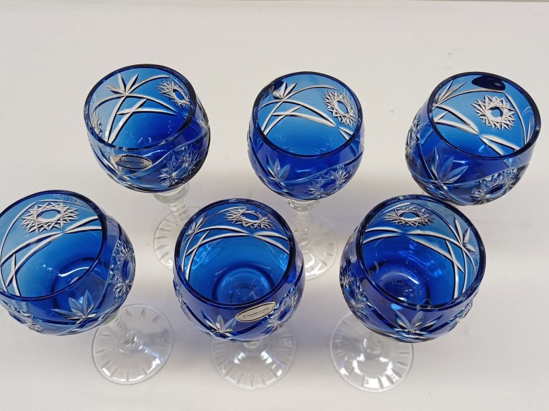 6 kobaltblauwe handgemaakte geslepen kristallen wijnglazen