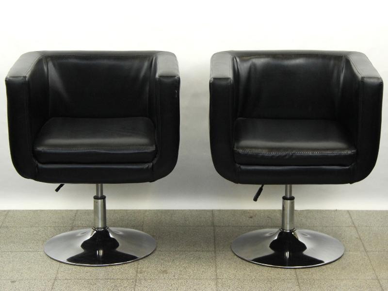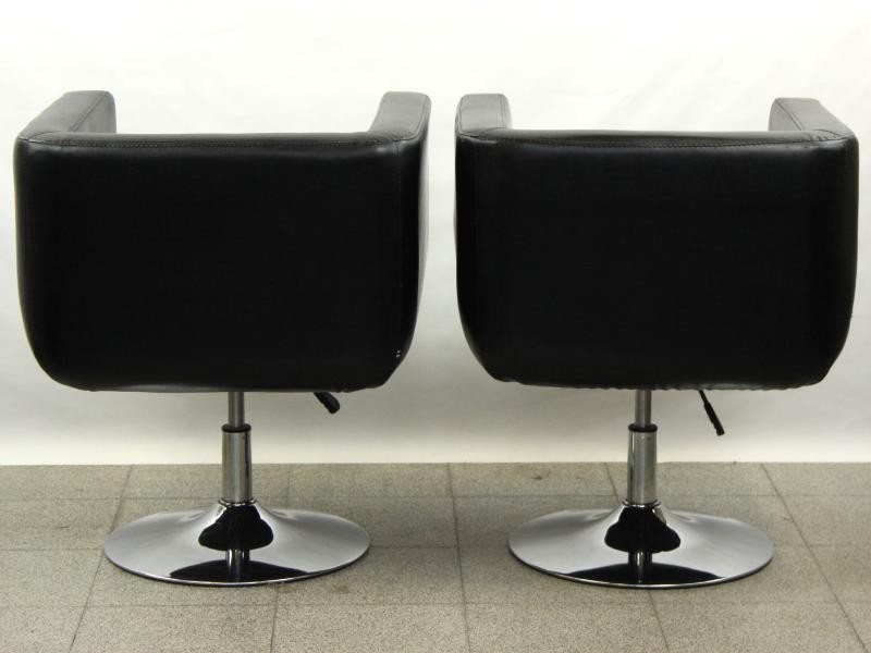 Twee comfortabele, zwarte kuipstoelen op draaivoet, met verstelbare hoogte en een strakke, eigentijdse look.