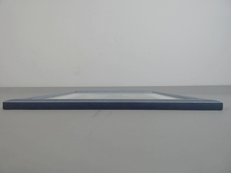- Zilverkleurige binnenrand op een blauwgrijze lijst.