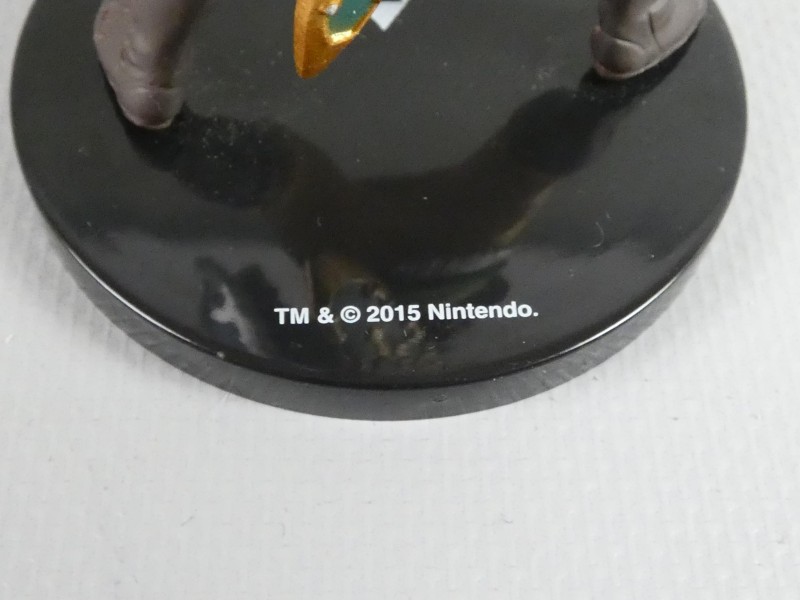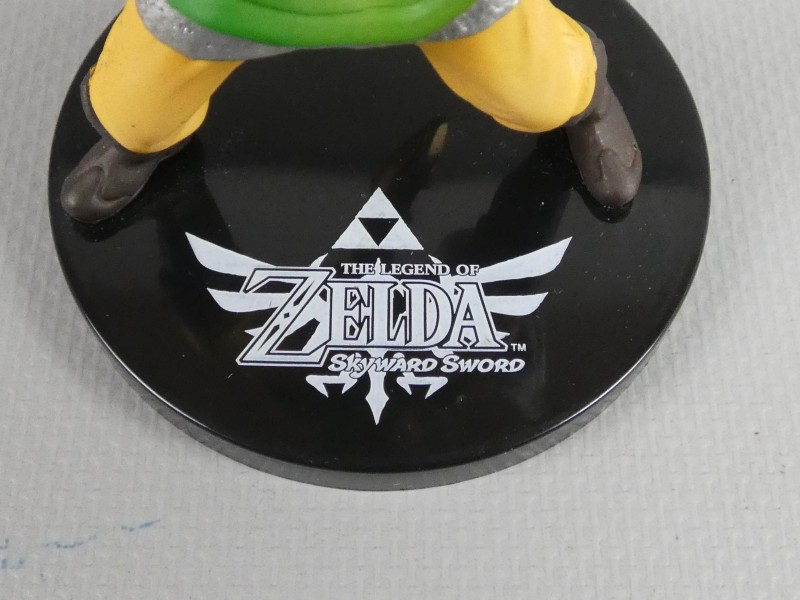 Basis: Het beeldje staat op een zwarte, ronde basis met het logo van The Legend of Zelda: Skyward Sword en de copyrightvermelding "TM & c◯ 2015 Nintendo."