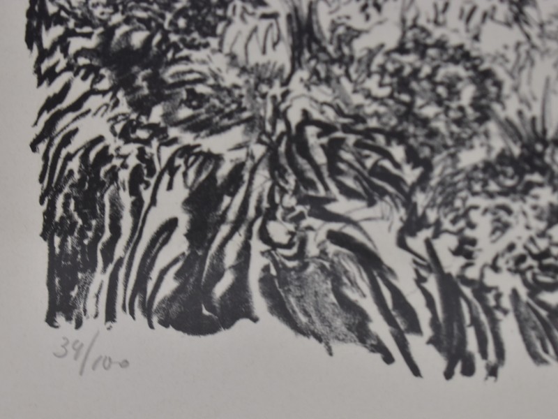 Litho van Frans Minnaert – Gezicht in landschap – Gesigneerd en genummerd (31/100).