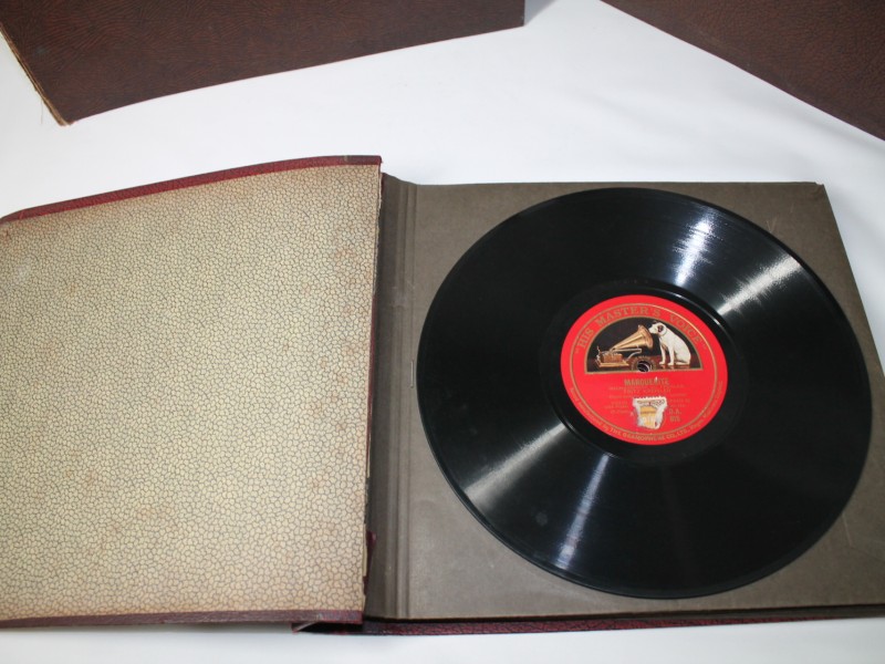 Deze set heeft 3 kaften gevuld met grammofoonplaten van HMV en een paar platen van Polydor, Columbia en Ultraphone. His Master's Voice (HMV) was een Brits record label van 1909 - 1993 voor ze officieel de deuren sloten en zich gingen verderzetten als muziekwinkel.