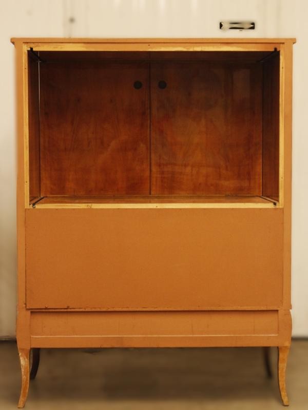 De kast is vervaardigd in de eerste helft van de 20e eeuw en getuigt van hoogstaand ambachtelijk meubelmakerswerk, vermoedelijk van Franse of Belgische herkomst.