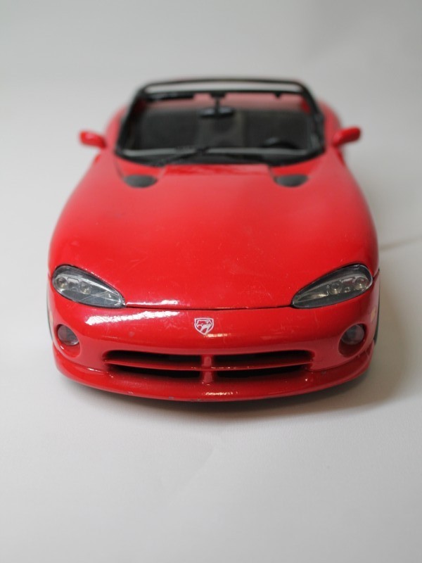 Een rode modelauto van een Dodge Viper RT/10 uit 1992. Het is een diecast (gegoten metaal), en heeft bewegende onderdelen. Ook kunnen die 2 deuren, motorkap en koffer open. Er ontbreekt enkel een raampje voor de voorruit, verder in goede staat.