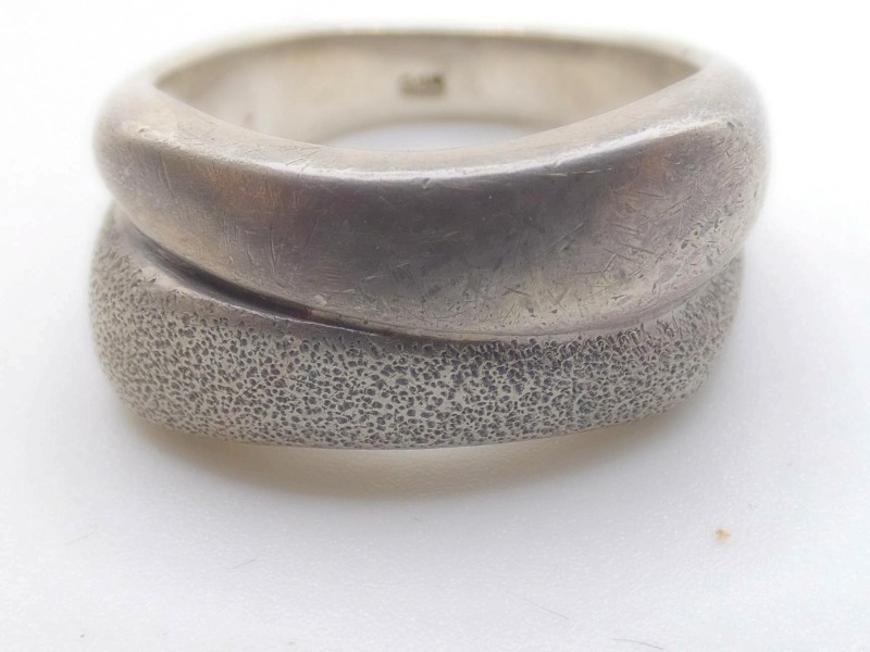De ring combineert twee contrasterende afwerkingen.