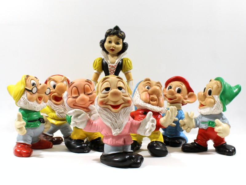Een charmante vintage set uit 1963 met Sneeuwwitje en de Zeven Dwergen, geproduceerd door Walt Disney Productions.