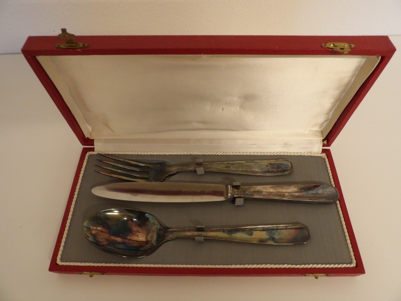 Er zijn nog 2 lepels, 2 vorken en 1 mes inbegrepen waarvan het merk en de plaatwaarde niet direct duidelijk zijn.