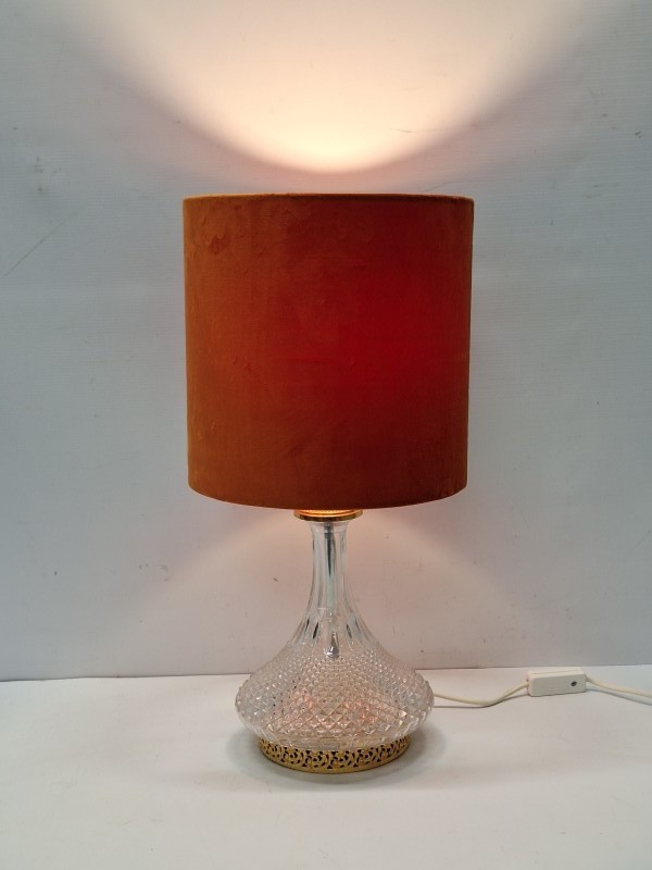 Vintage Hollywood Regency tafellamp - diamantgeslepen kristal & messing voet (jaren 60–70)