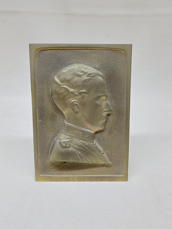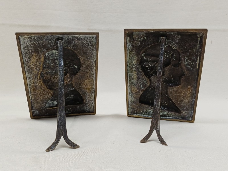 Set van portretplaquettes met reliëfafbeelding van koning Leopold III en koningin Astrid van België