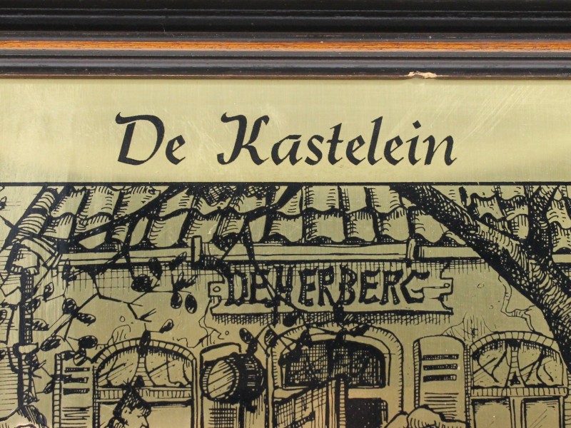 Een sfeervolle en karaktervolle kopergravure getiteld “Kastelein”. Dit charmante werk toont een levendig tafereel in en rond een herberg, waar de kastelein en zijn gasten samenkomen in een warme, bijna tijdloze setting.