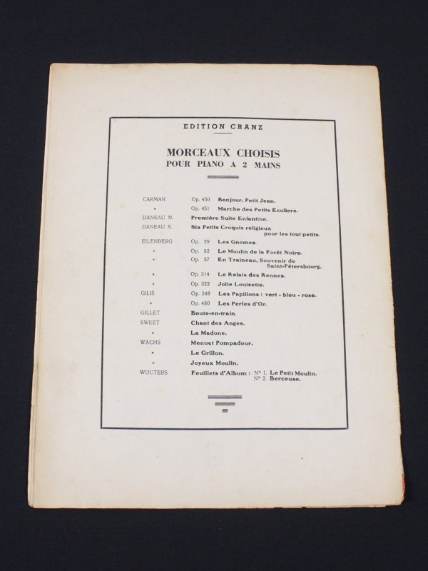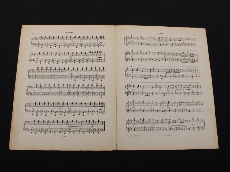 De originele uitgave, gedrukt in België door A. Cranz en internationaal verspreid in Londen en Leipzig, weerspiegelt de periode waarin pianoduetten populair waren als amusement, oefening en elegant concertstuk. Elke pagina straalt vakmanschap uit, met de primo-partij rechts en de secundo-partij links, klaar om door twee pianisten op één instrument tot leven te worden gebracht.
